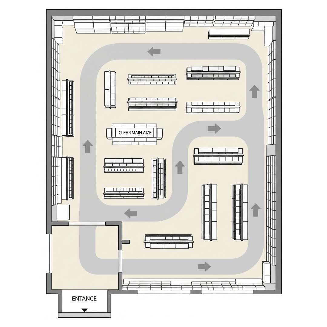 ただし、ここで絶対に注意したいのが通路の幅です。お客様にストレスなく店内を歩いてもらうためには、適切な通路幅が必要不可欠。一般的に、人が一人通るのに最低でも60cmは必要とされています。お客様同士がすれ違うことや、ベビーカー、車椅子の方のことも考えると、主要な通路は最低でも90cm、できれば「120cm」を一つの基準として確保するのが理想的です。通路が狭いと、お客様は「奥に行くのが面倒だな」「ゆっくり見られないな」と感じ、お店の奥まで進むことを諦めてしまいます。このわずかな差が、お客様の滞在時間と満足度に大きく影響するのです。