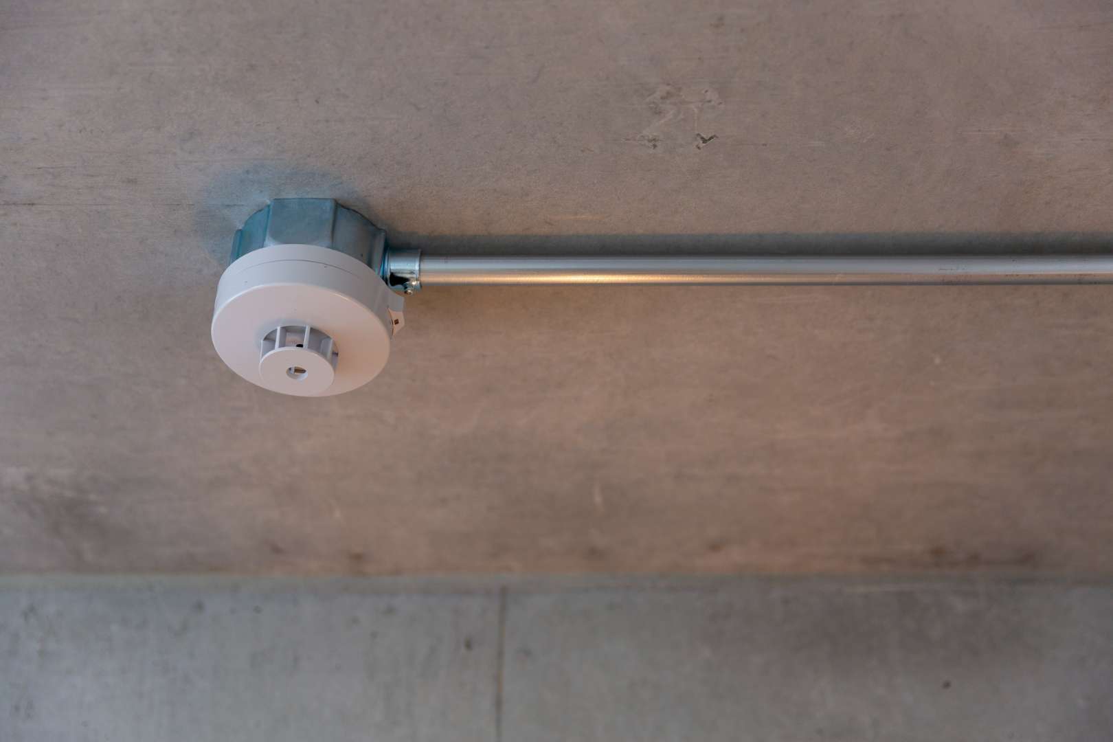 予作動式は、火災感知器や制御盤と連動して作動する方式で、ヘッドが開く前に設備側の検知装置が火災を判断します。誤放水を避けたい施設や精密機器が多い建物で採用されることが多く、スプリンクラーヘッドが破損した場合などでも、勝手に水が放出されない仕組みになっています。配管内が空気の状態で制御されているため、湿式と乾式のメリットを組み合わせつつ、より確実に作動を制御できる点が特徴です。内装工事では、感知器や配管ルートとの干渉が起きないよう、事前確認がとても重要になります。